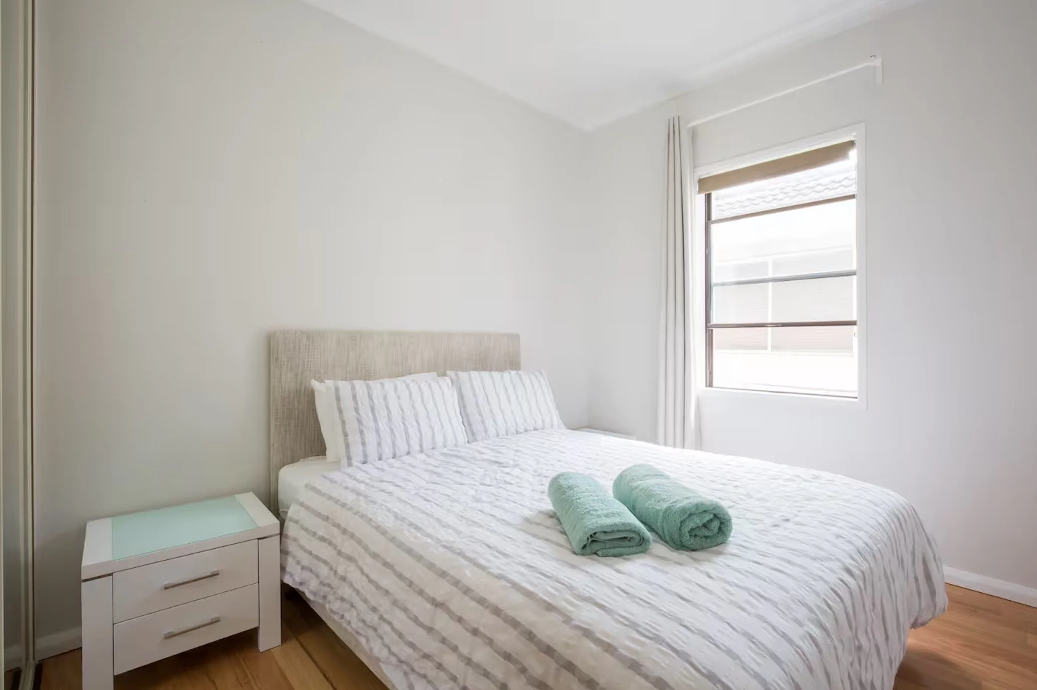 The apartment features all-new Australian Blackbutt floorboards, fresh furnishings, and large glass doors that invite in the ocean breeze. Additional features include a dedicated desk in the master bedroom and high-speed NBN Wi-Fi, ideal for working remotely.